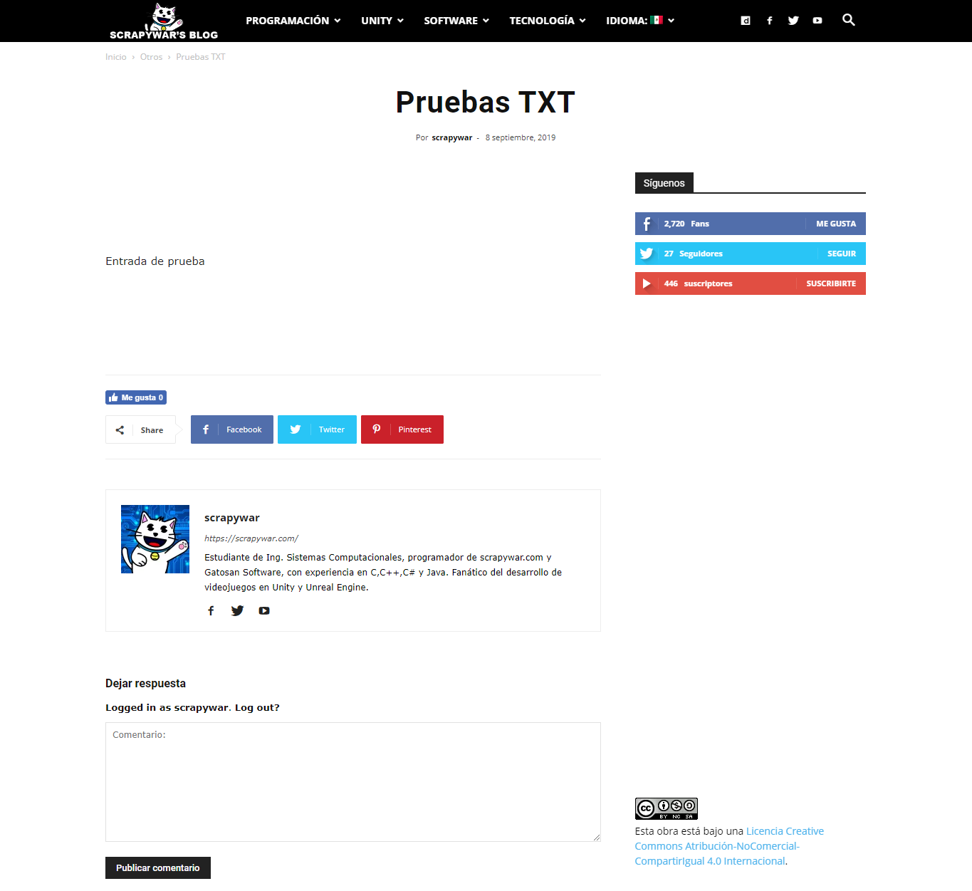 Una vez editado el archivo debemos guardarlo y comprobar que esta modificación ha funcionado. Esta modificación no afecta el funcionamiento de los comentarios en las entradas publicadas, por lo que tendrás que preocuparte por esto mas tarde.