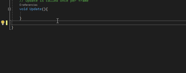 5.- IntelliSense puede insertar el mensaje de Unity seleccionado, incluidos los parámetros necesarios: