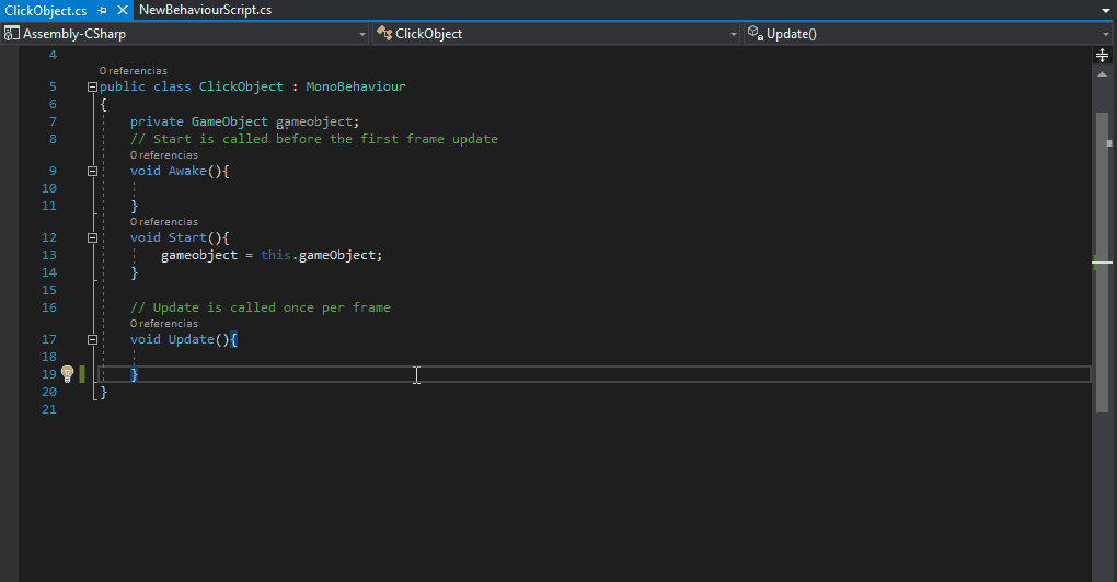 1.- Coloque su cursor dentro de la clase de su script de MonoBehaviour.